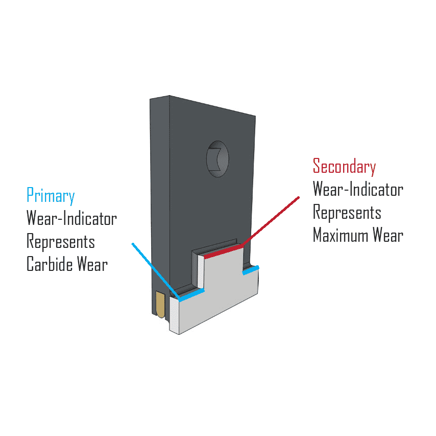 The carbide inserts are protected by a fully-welded Hardox cover plate to prevent chipping. And feature two highly-visible wear indicators to let you know when it’s time to replace the cutting edges.