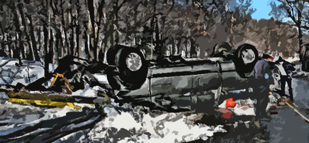 Without hesitation he picks up his plow, and rips out of the parking lot he was plowing to head over and rescue Tony and his 2 hand crew guys from the ditch. Upon arrival, he sees a mess. The brand new 3/4 ton Chevy pickup is crumpled up against the side of the telephone pole about 40’ down into a steep ditch. The snow blowers and shovels were tossed about, and a couple landed around the truck during the accident. Worried that the police would show up and slow things down, Adam jumps into action.