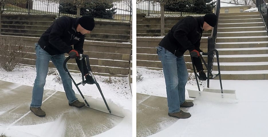 Many shovels on the market today are lacking a sharp, straight edge to create a clean surface on the first pass. If the first pass does not result in a clean surface, the operator may need to repeat the pass, or apply ice melting product to clean the surface completely. We like to say it almost “hurts our pride” to shovel a sidewalk, but because you don’t have a sharp edge there is snow left behind!