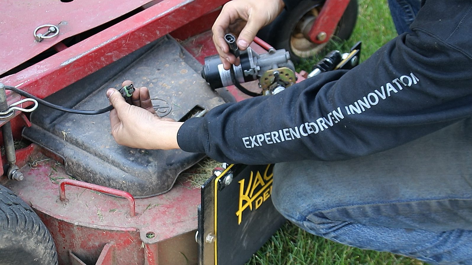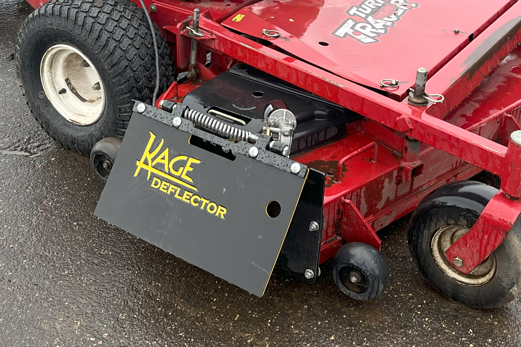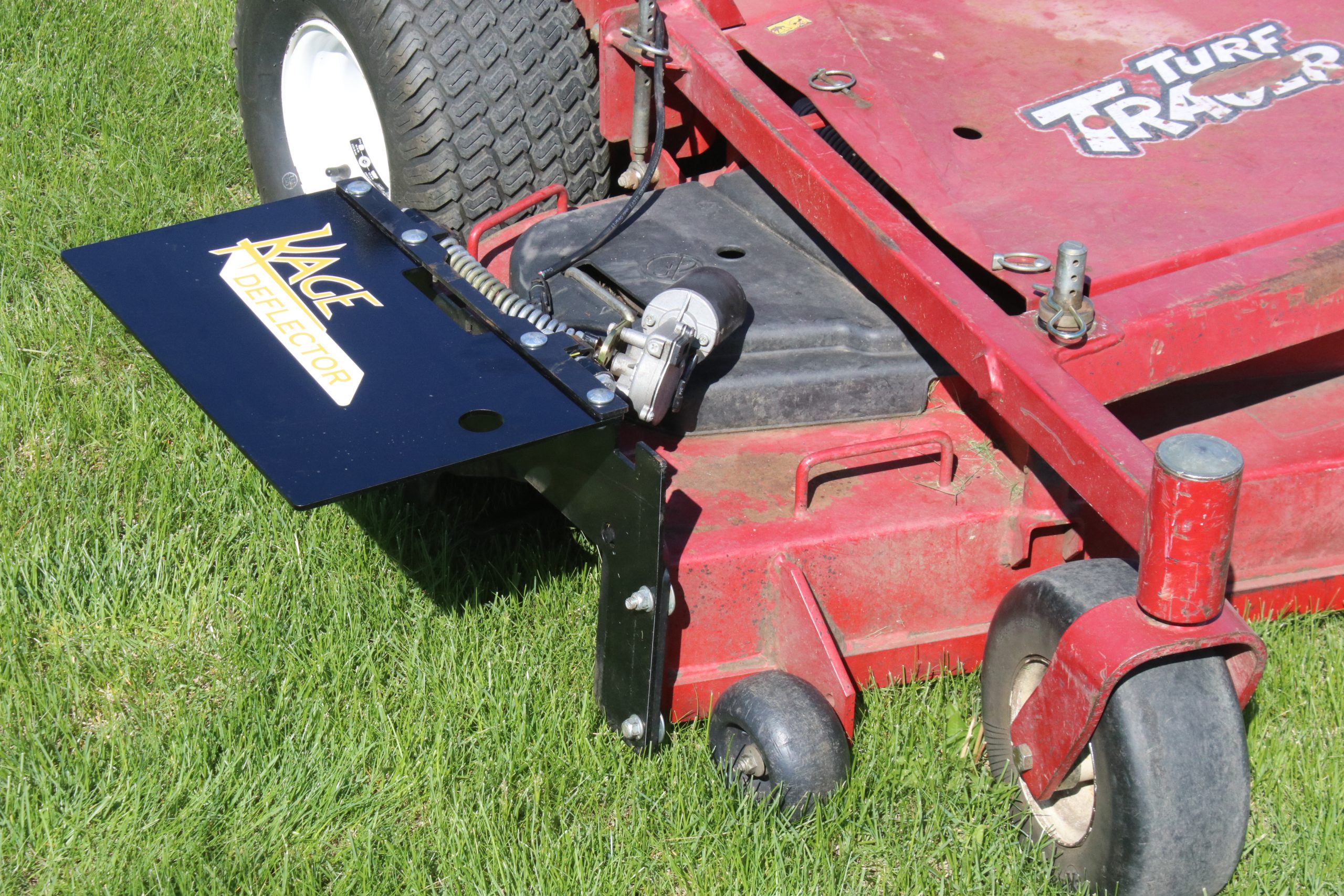 Do you ever mow near vehicles, buildings, streets, or other humans? Of course you do! So, you know the importance of controlling where your mower discharges its clippings, or heaven forbid, rocks and other hard projectiles. The KAGE grass deflector gives you ultimate control of your mower discharge through the use of a lightweight, yet durable, grass deflector flap that is controlled electronically with a toggle switch.