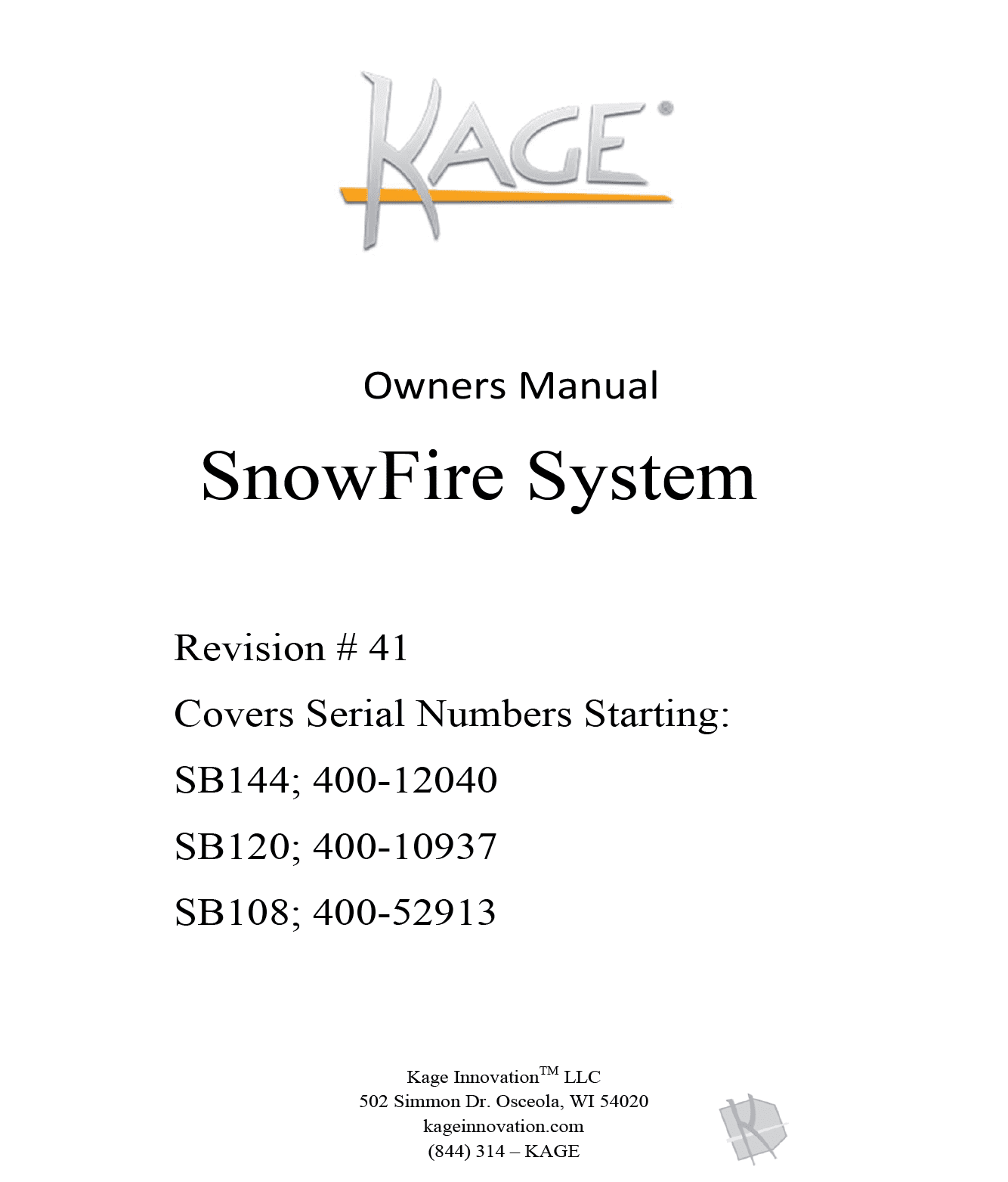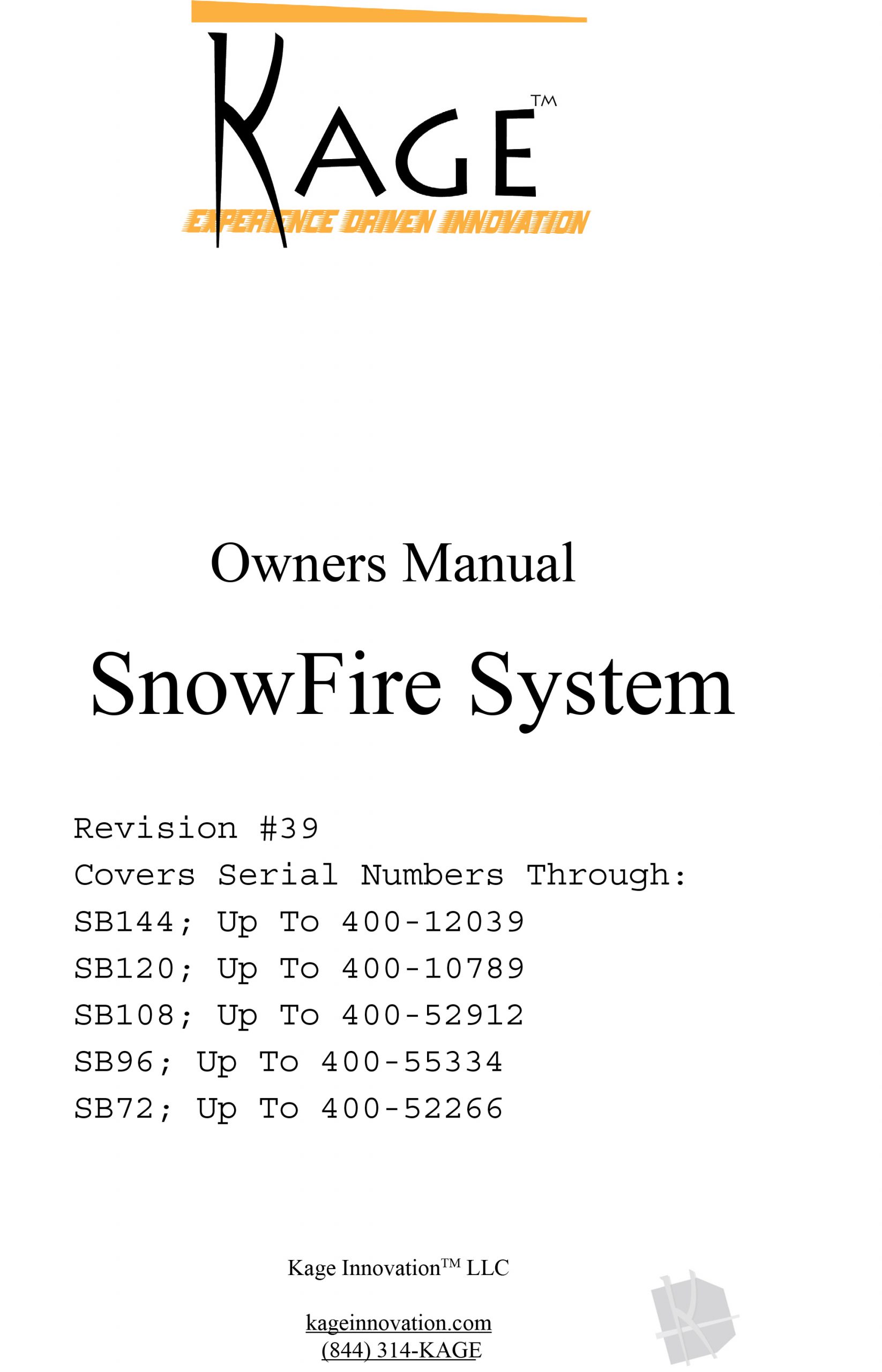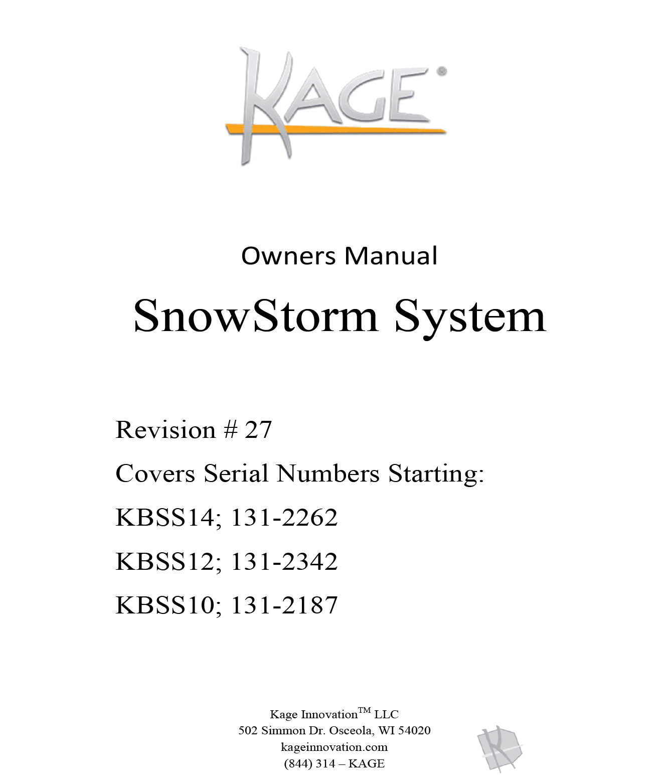 KAGE Innovation Product Manuals