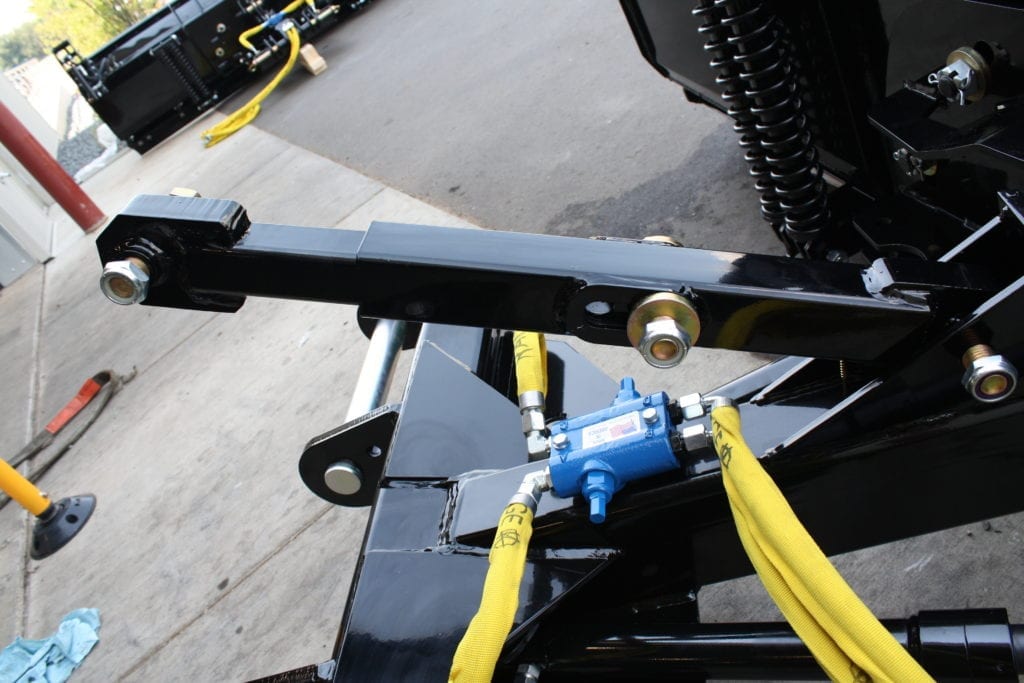 The LBK Series Snow Plow System differs from the SBK Snow Plow System because there is a floating top link just forward of the quick attach plate on the LBK. This floating top link, on a compact wheel loader, is critical to keep the plow blade tight to the surface that’s being plowed.