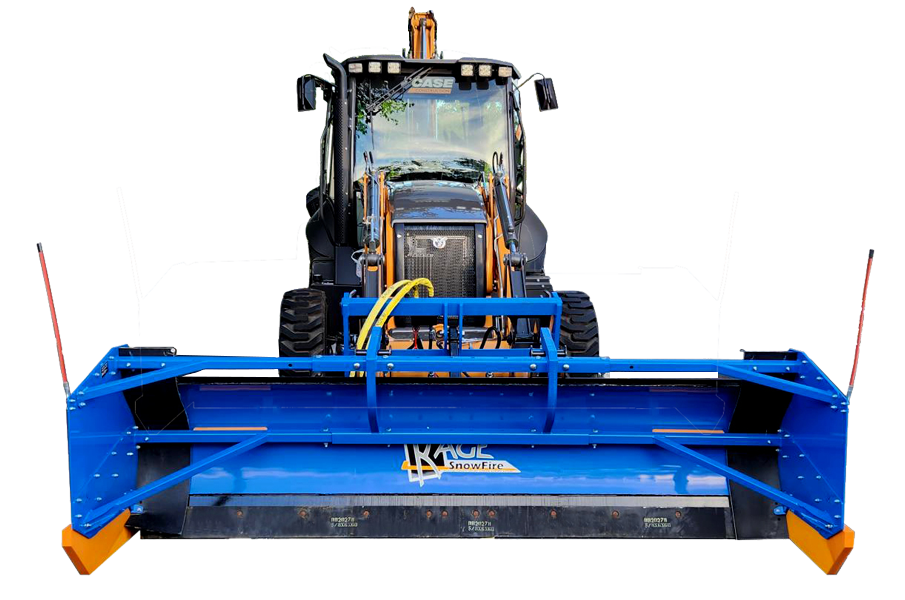 Skid steers are agile and can spin within their own footprint, making them ideal for plowing in confined areas. However, they have lower travel speeds compared to larger machines. Even when equipped with an efficient blade or box pusher, a skid steer will take longer to clear a large lot simply because it can’t cover ground as fast. One way to increase speed it to equip the skid steers with larger diameter snow tires like KAGE Klawz.