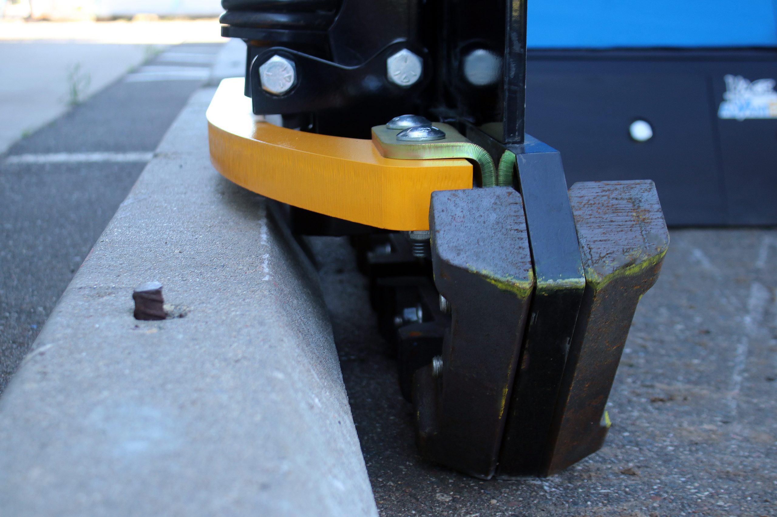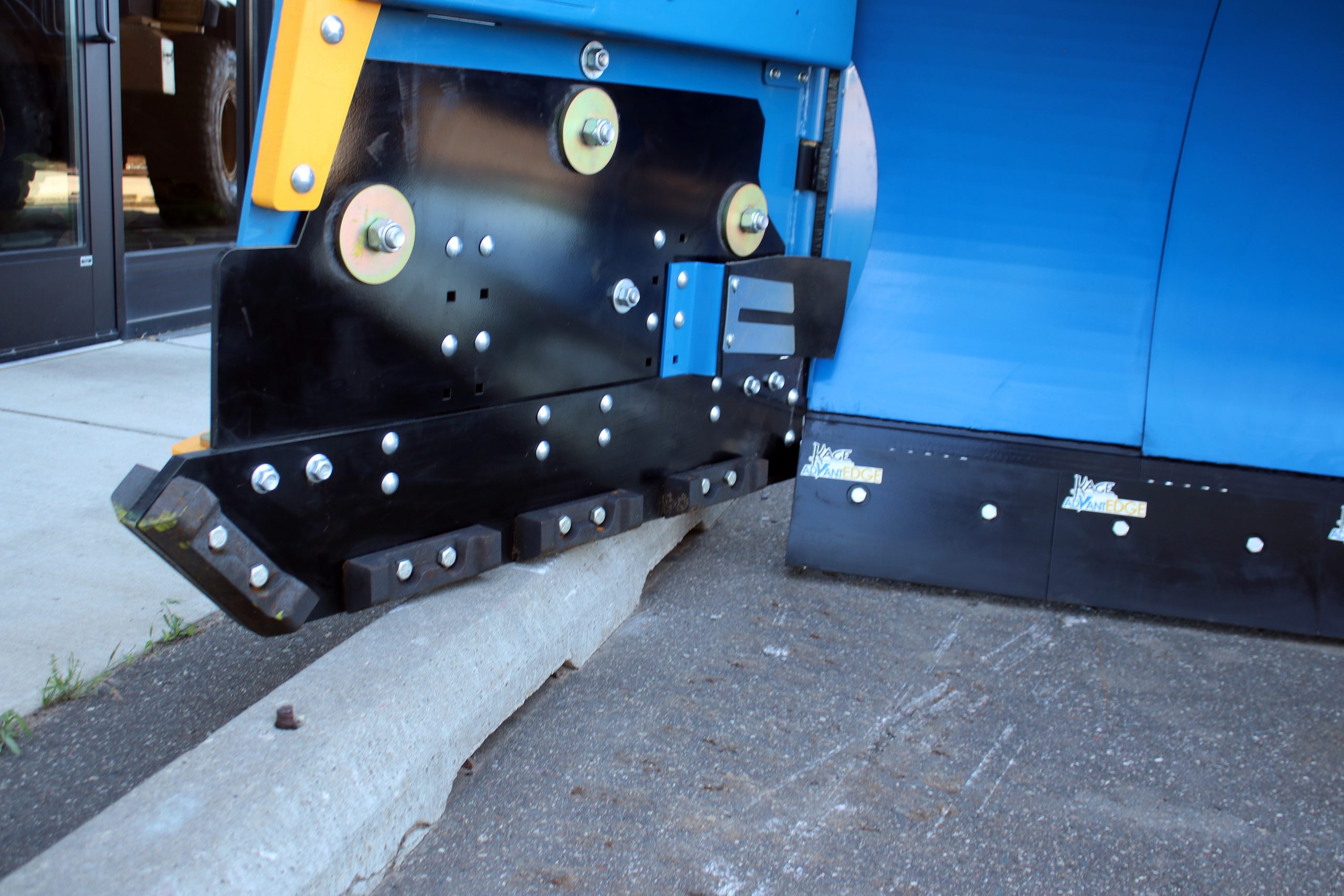 We’ve already discussed how this wing plow interacts with curbs through the trip edge and floating skids, but how about running curbs?