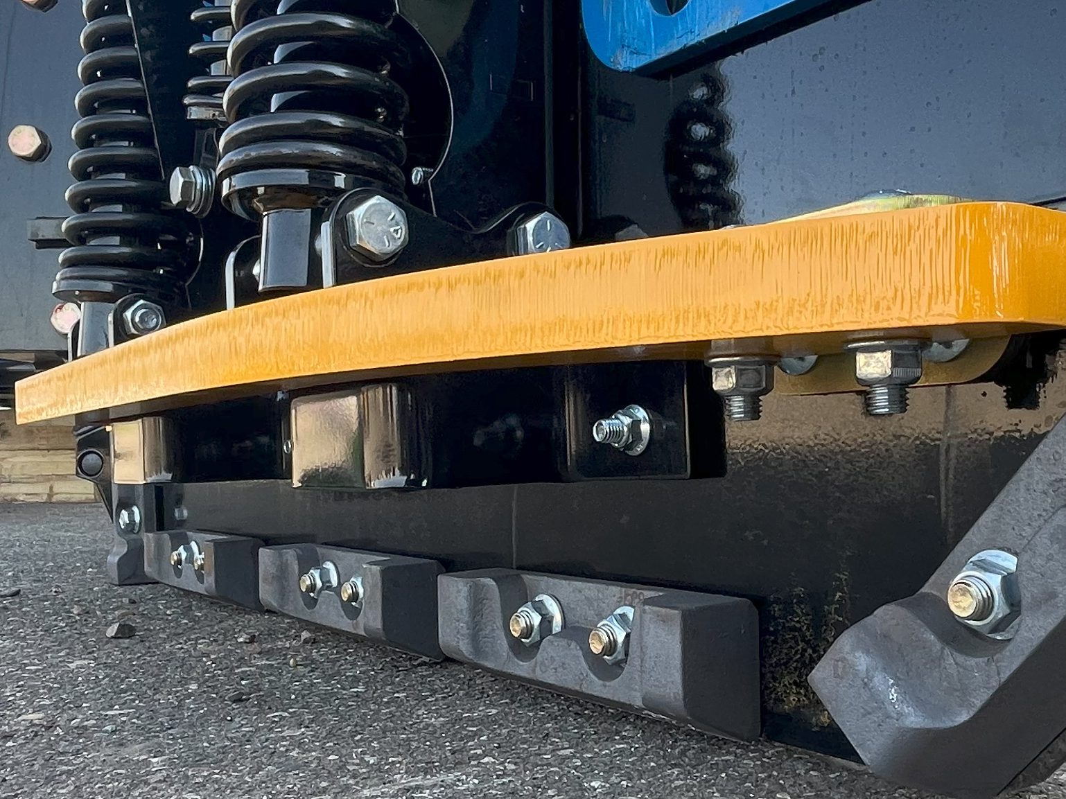This live cutting edge will contour to wheel depressions and crowns as well as accommodate protruding manhole covers to ensure maximum scrape with minimum damage. It also reduces road noise from scraping and prevents uneven wear to the cutting edge as each 18” or 24” section floats and oscillates for constant contact and even pressure through its spring-loaded design.