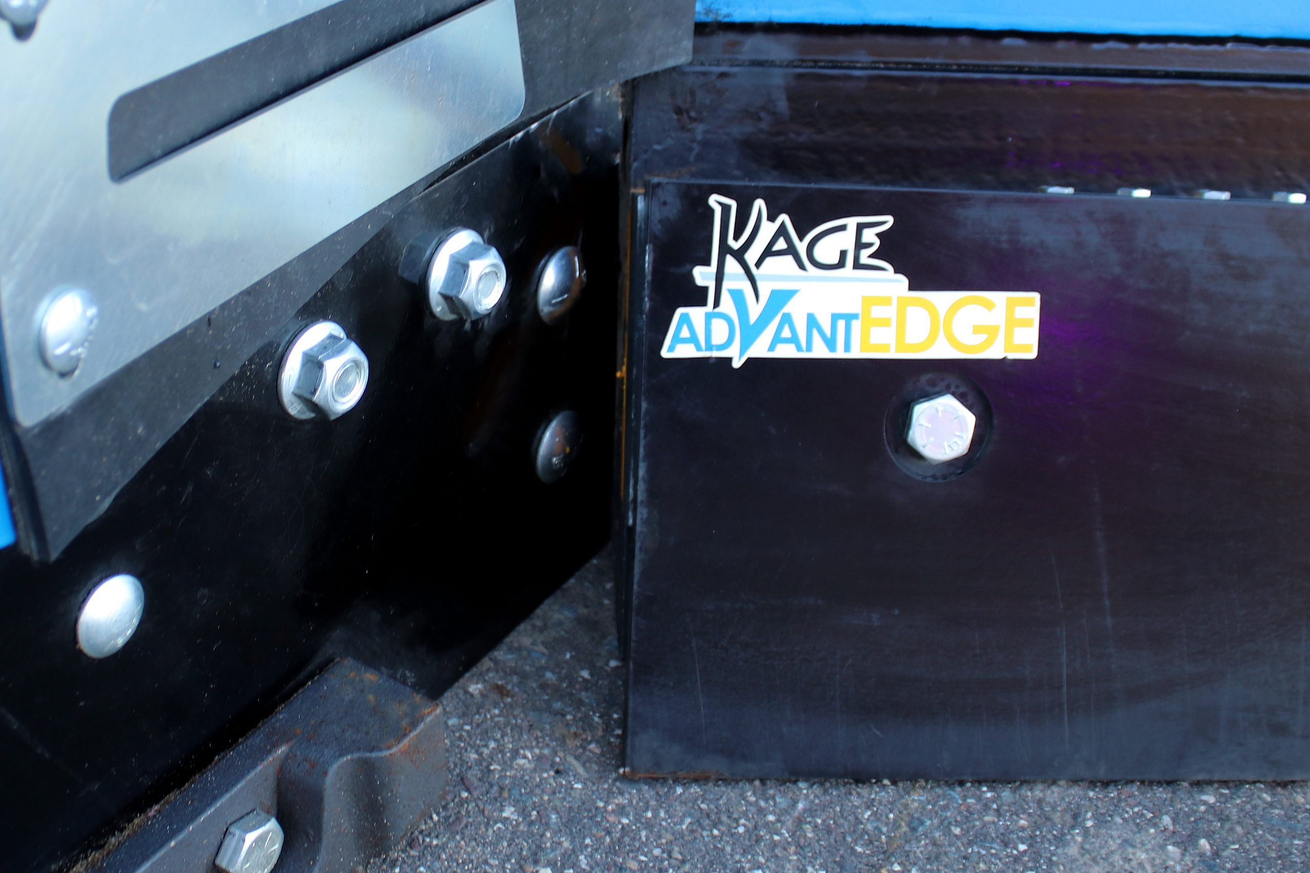 KAGE’s sectional cutting edge – the AdvantEdge system is compatible with the split trip edge. That doesn’t mean each individual section of the AdvantEdge trips. Rather half the length of the full cutting trips with all approprate AdvantEdge sections attached – just as if it had a basic steel cutting edge to trip.