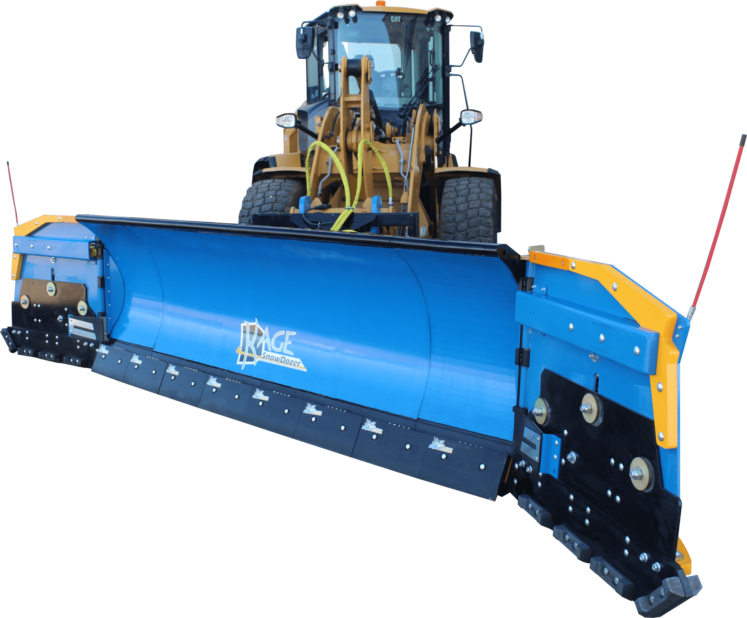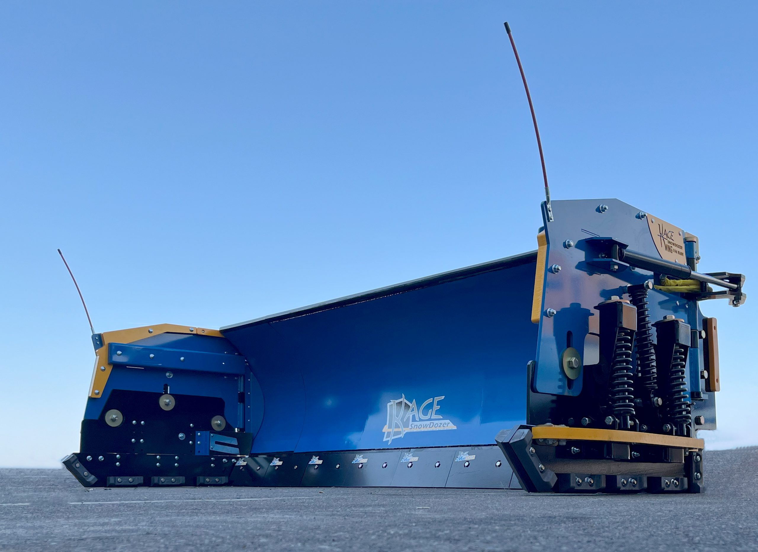 Historically, wing plows have struggled with everything from a complicated leveling process which leads to uneven wear on the wings to limited control functions to unreliable hydraulic systems and snow leakage between the blade and the wings at the hinge. With the SnowDozer Wing plow, KAGE has addressed all of these issues.