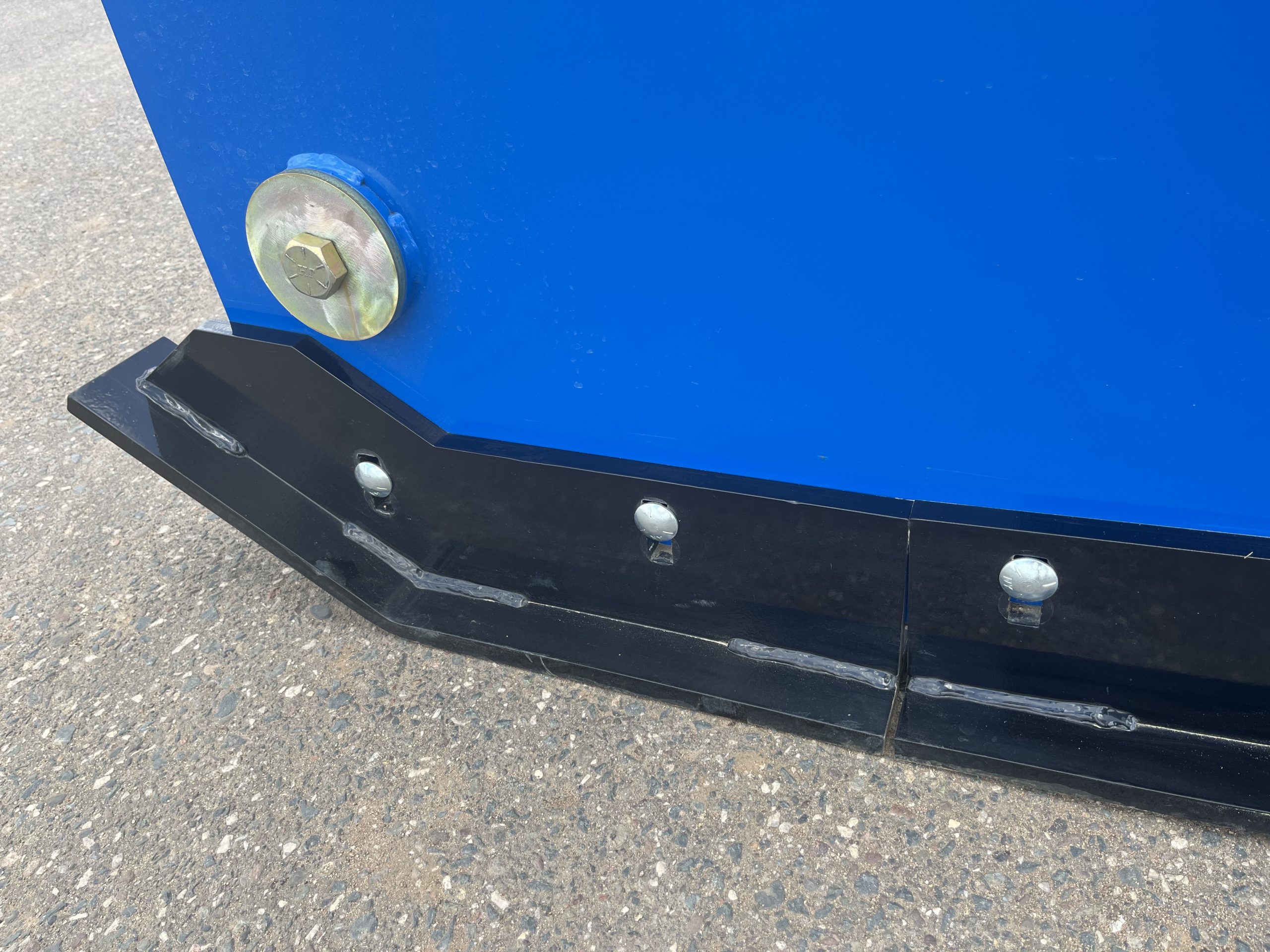 The KAGE SnowStorm BLAST Steel containment box does not interfere with the scraping ability of the cutting edge. This large trip edge box plow features replaceable 3-piece steel skids that glide effortlessly over nearly all terrain including curbs, thanks to their wide surface area and aggressively angled toe and heel and floating steel side panels. This allows for cleaner plowing right up to (and over) the curb and prevents the machine from being forced to a sudden stop. It also reduces the risk of damaging the curb and/or pusher. The skids lift with the curb as they come in contact with it and then are pushed back down by the leaf springs as pressure from the obstacle is removed.