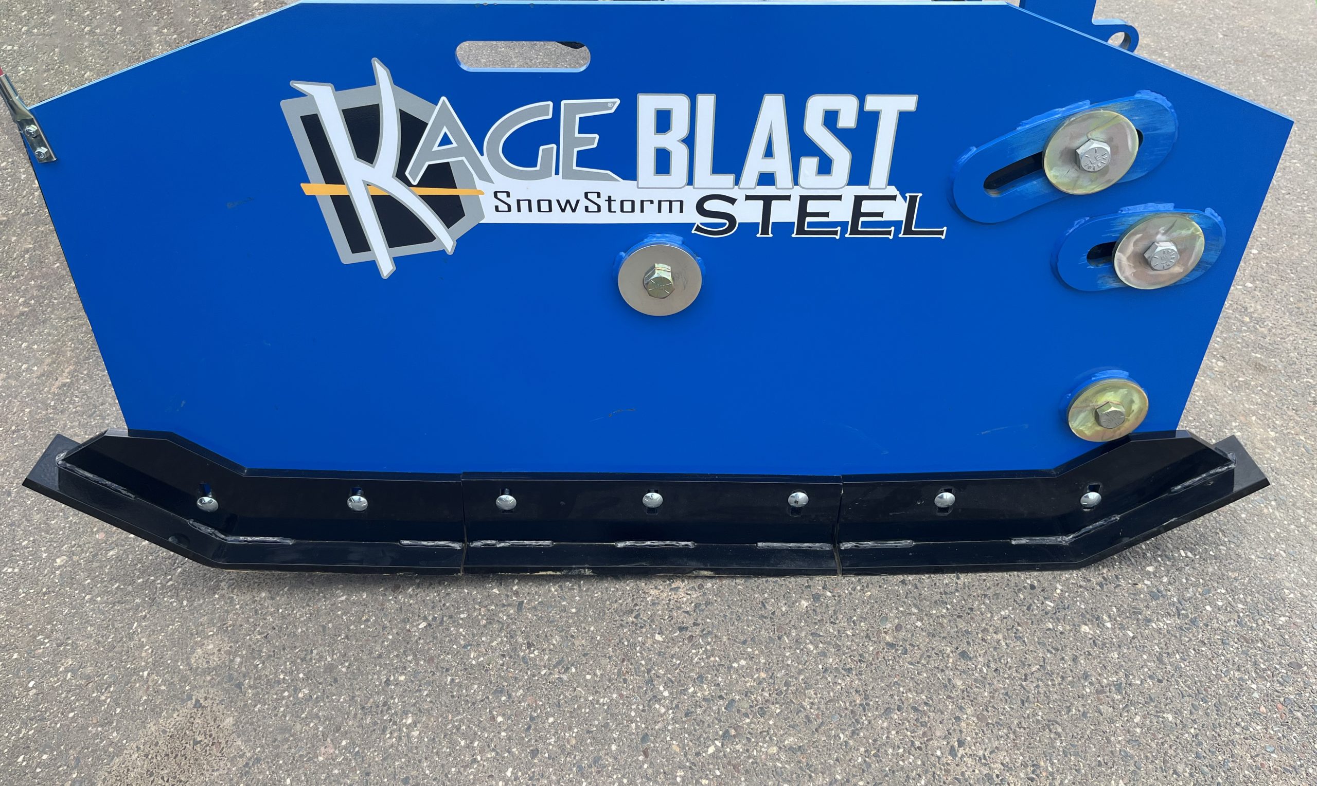 The SnowStorm BLAST Steel snow pusher uses the same aggressive 65-degree attack angle of the cutting edge as all KAGE plows and pushers for optimal scraping capabilities.