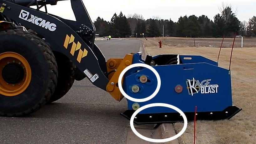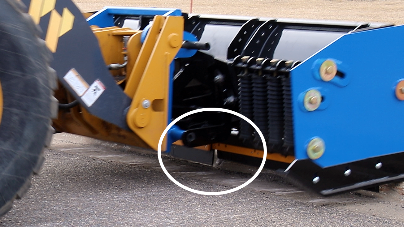 They also allow the cutting edge to stay in contact with the ground while the side panels ride up and over curbs, enabling a true curb-to-curb scrape as demonstrated below.