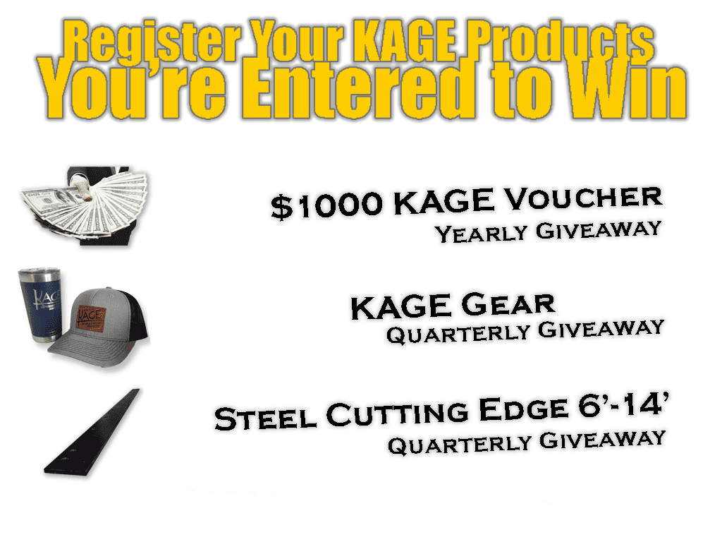 Giveaway Information – Register your KAGE products today and you’ll be submitted for a chance to win one of our great prizes!