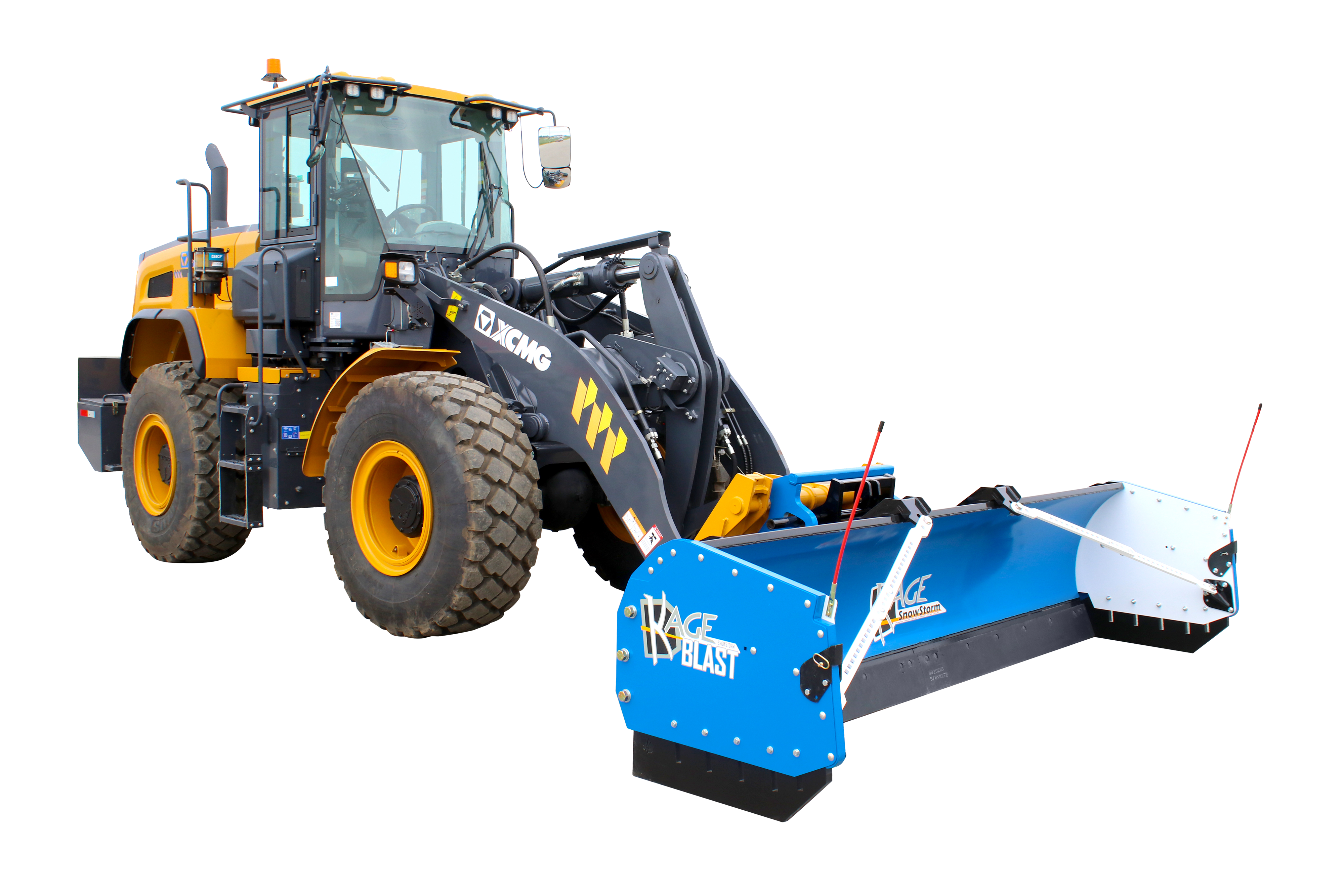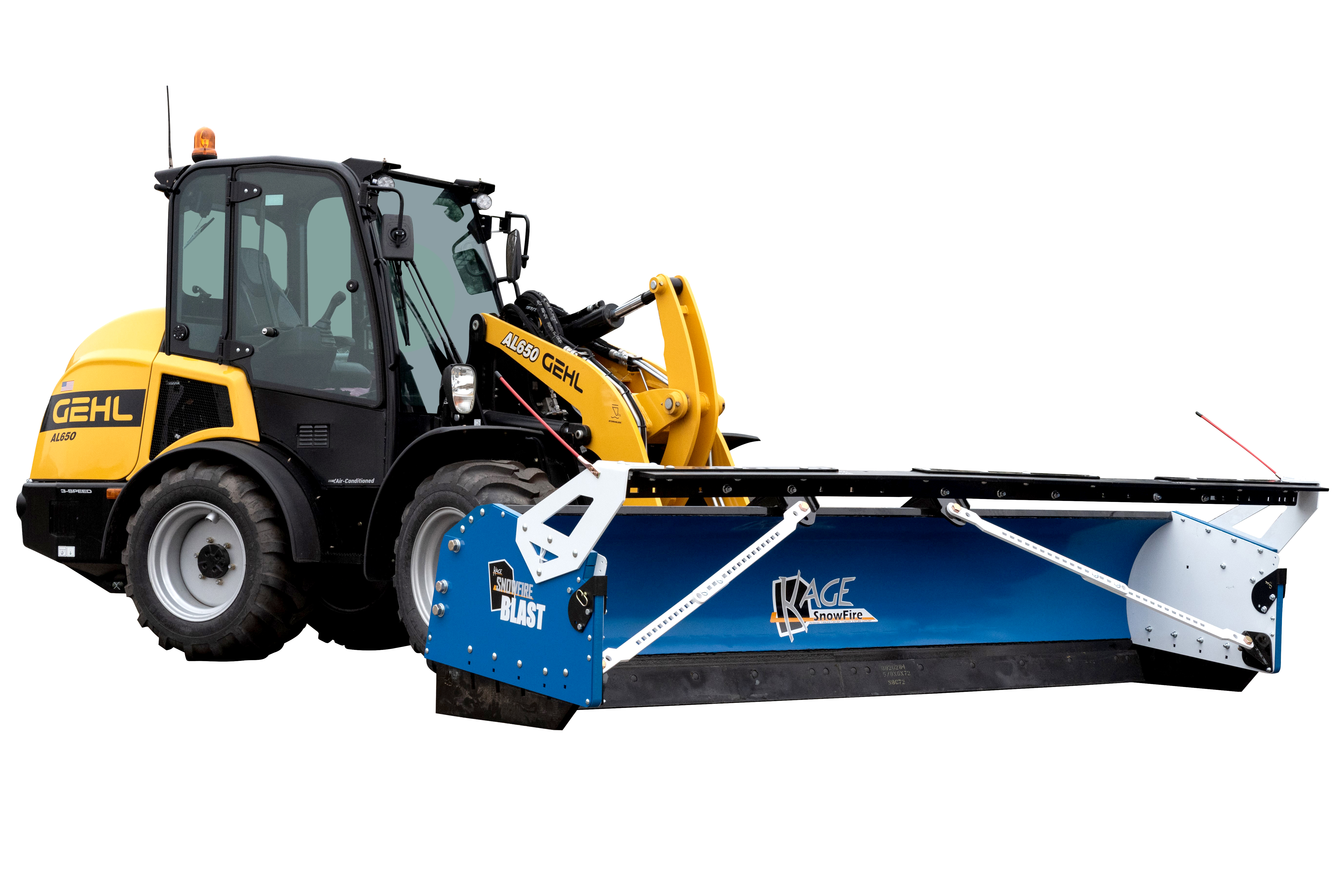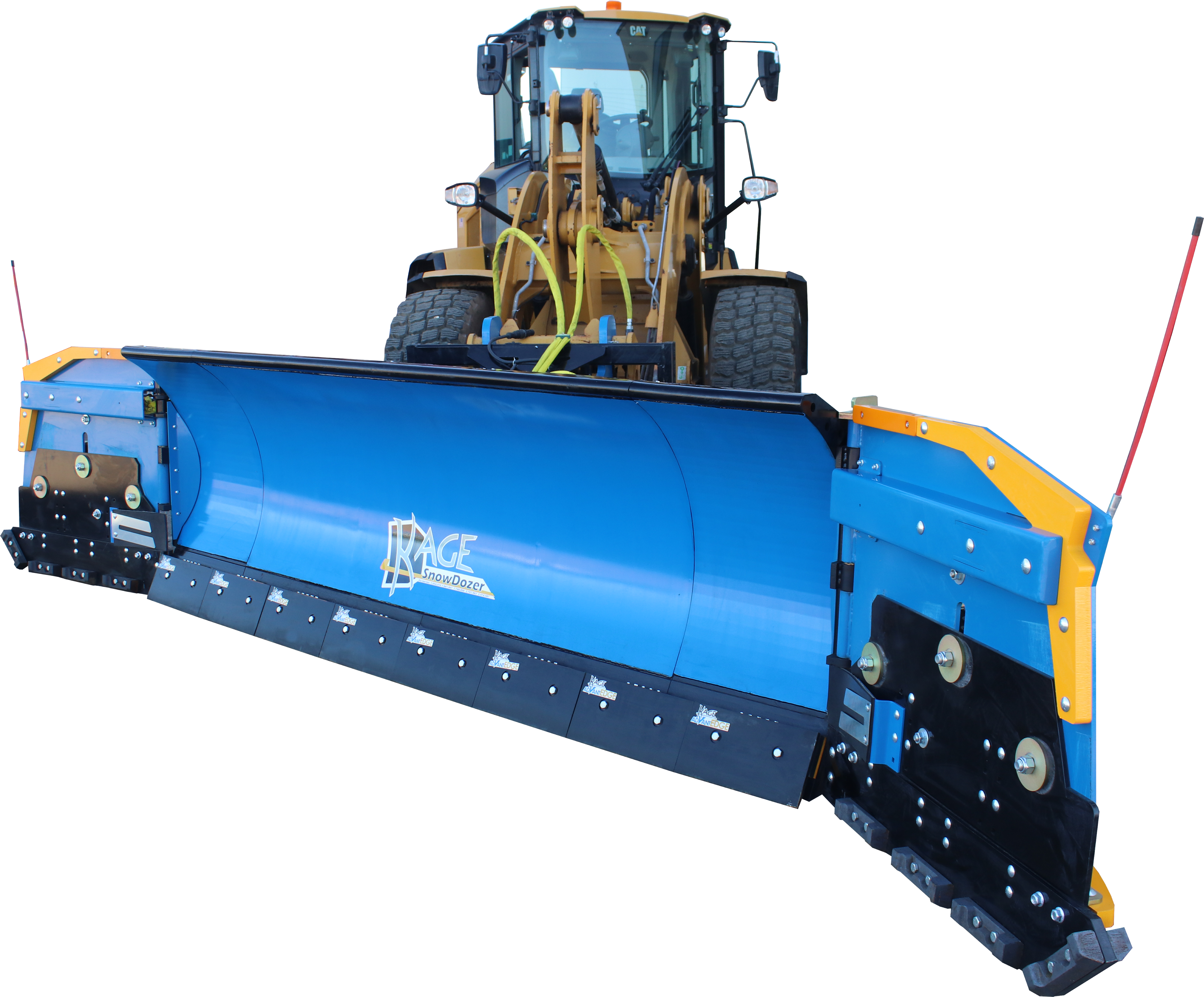 KAGE is the proud inventor and patent holder of the 2-in-1 plow systems including the original wheel loader snow plow and pusher system attachment – the KAGE SnowFire – for up to 15K-pound loaders. KAGE also offers snow plow attachments for midsize wheel loaders (15k- to 30k pounds) and large wheel loaders (30k- to 50k-pounds). Its entry level wheel loader snow pushers are known as the SnowFire BLAST and SnowStorm BLAST. The BLAST pushers remove the need for hydraulic hoses yet offer all of the great float features available in its high end 2-in-1 systems. In 2024, KAGE also released its first loader snow plow with hydraulic wings, known as the SnowDozer Wing.