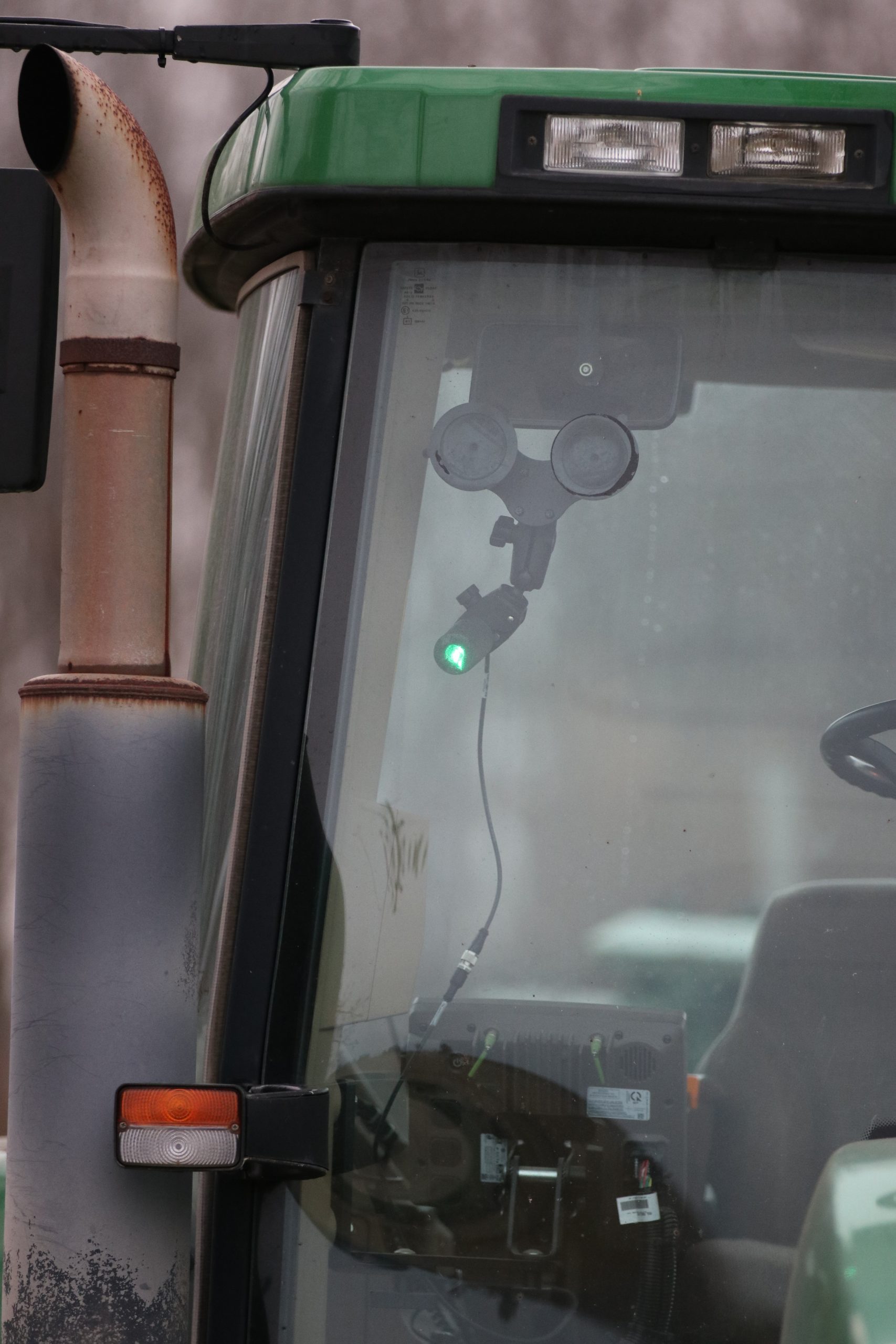 Laser Tractor Guidance System Mounted to Windshield